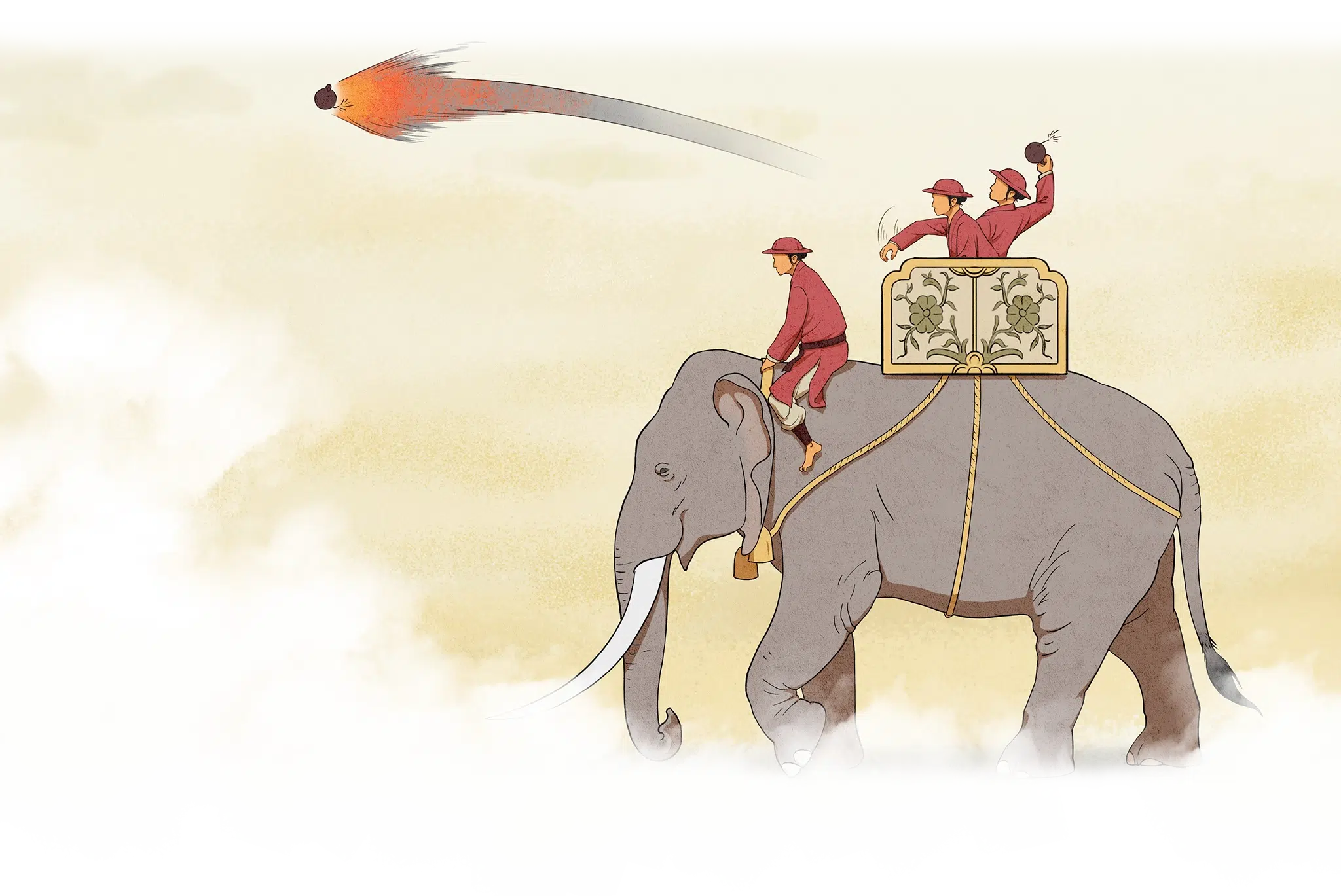 Hoàng đế Quang Trung đã chuẩn bị sẵn sáu mươi tấm ván gỗ. Ông sai quân lính kết ba tấm lại với nhau, bên ngoài bọc rơm rạ thấm nước, làm thành 20 cái khiên lớn. Mỗi khiên gỗ có 10 quân sĩ kiêu dũng khiêng đi. Những người này chỉ đeo đoản đao sau lưng. Phía sau họ lại có 20 binh sĩ cầm binh khí. Tất cả hợp lại thành một đội 30 người, tổng cộng có 20 đội. Các đội này dàn thành một hàng ngang tiến lên. Hoàng đế Quang Trung đốc tượng binh đi phía sau.
